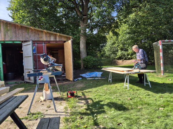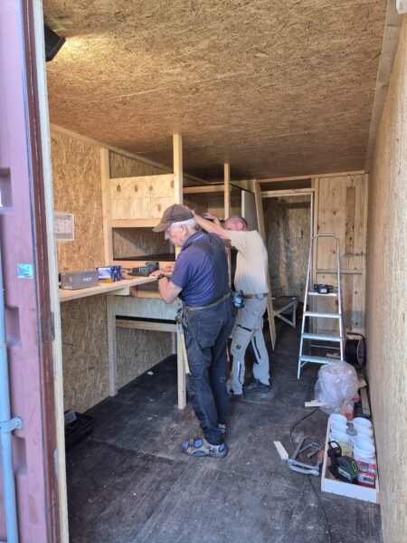 Lørdag den 20.9 arbejdede en 3-mandsgruppe bestående af Carsten, Freddy og Bjarne, med indretning af containeren, der nu står færdig. Lidt arbejde med lys og udsugning udestår dog.